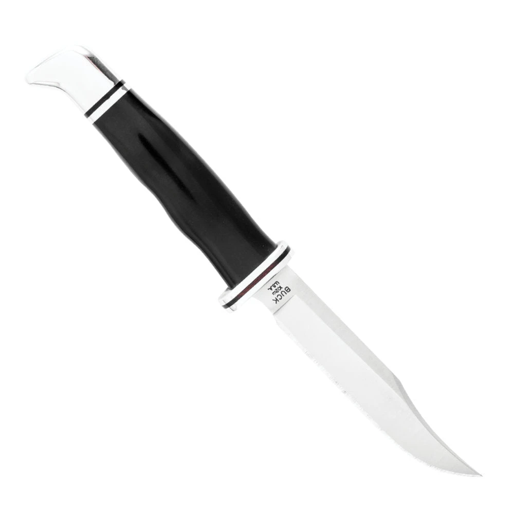 The Buck 102 Buck Woodsman Knife was designed to be the ultimate hunting knife. Its clip-point blade is ideal for fish and small game, and its full tang construction ensures it will stand up to serious use over time. A finger guard is integrated into the blade to keep your fingers safe and prevent them from sliding onto the blade accidentally, even in wet conditions. Thumb grip ridges also add to a secure grip.