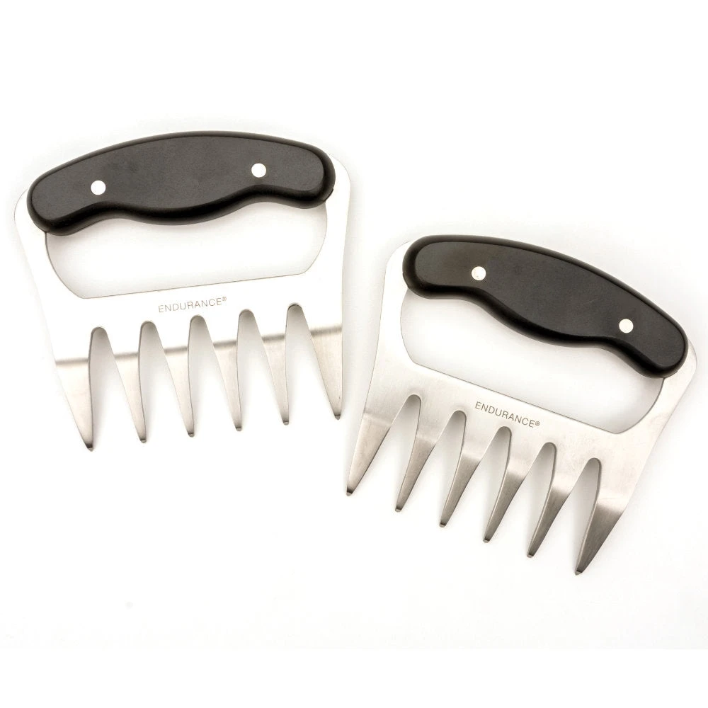 Endurance Stainless Steel Meat Shredders make shredding and pulling pork, chicken or brisket easy. The wood handles are contoured, giving them a comfortable grip, and accommodate both small and large hands alike. In addition to shredding meat, these multi-purpose tools are great for lifting large cuts of meat, holding food steady while carving, and even tossing and serving salads.
