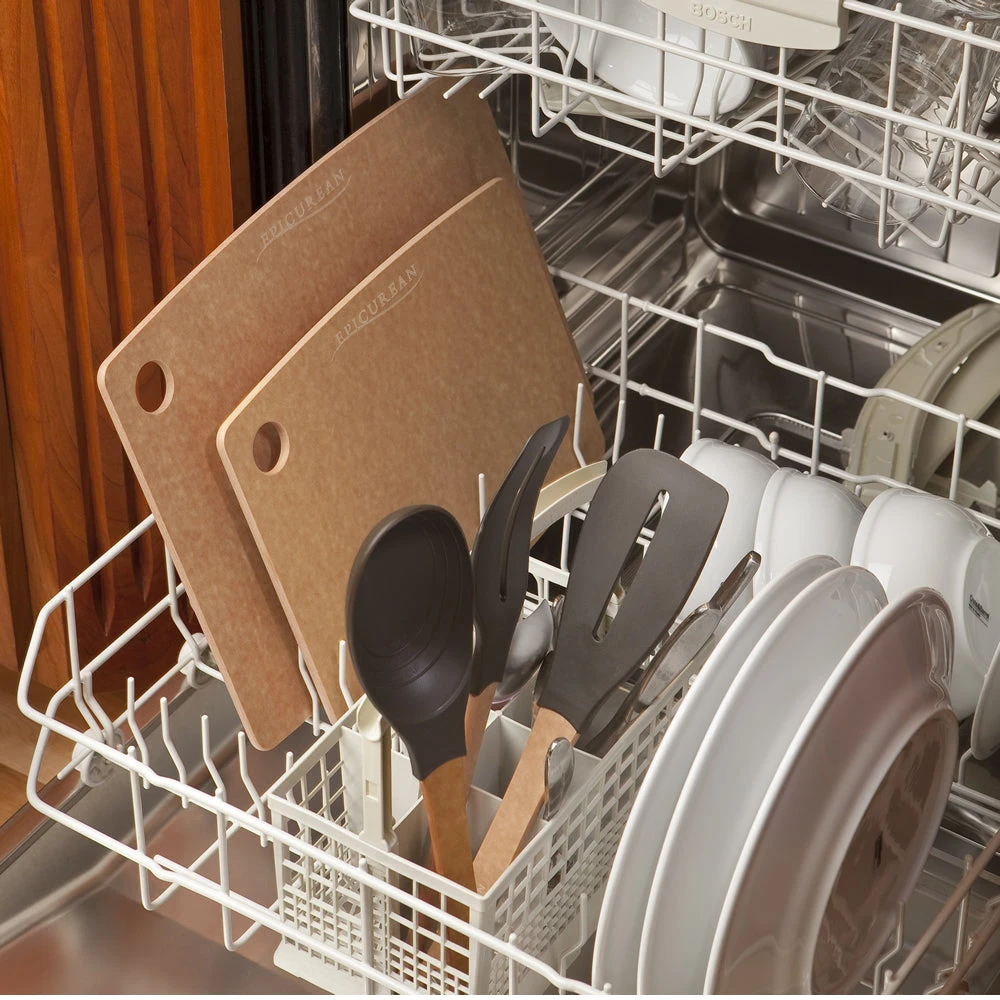 As with all Epicurean Cutting Surfaces, Kitchen Boards are NSF (National Sanitary Foundation) Certified, as the nonporous surface is easy to clean and will not harbor bacteria. Unlike traditional wood and bamboo cutting boards, Epicurean cutting surfaces are dishwasher safe.