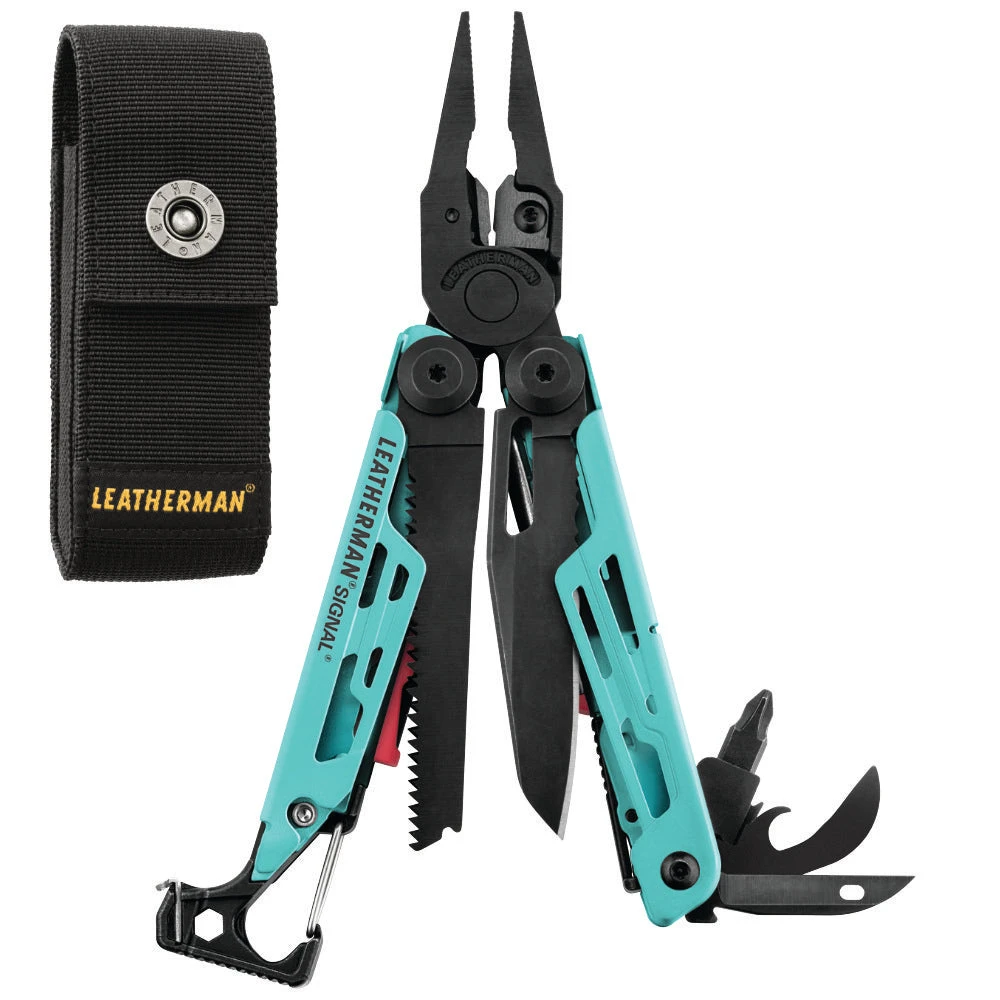 Additionally, the Signal includes Leatherman’s rugged traditional features like pliers, a can opener, saw, awl, and removable pocket clip. The Signal also includes popular tools such as a hammer, replaceable wire cutters, diamond-coated file, and bit driver.