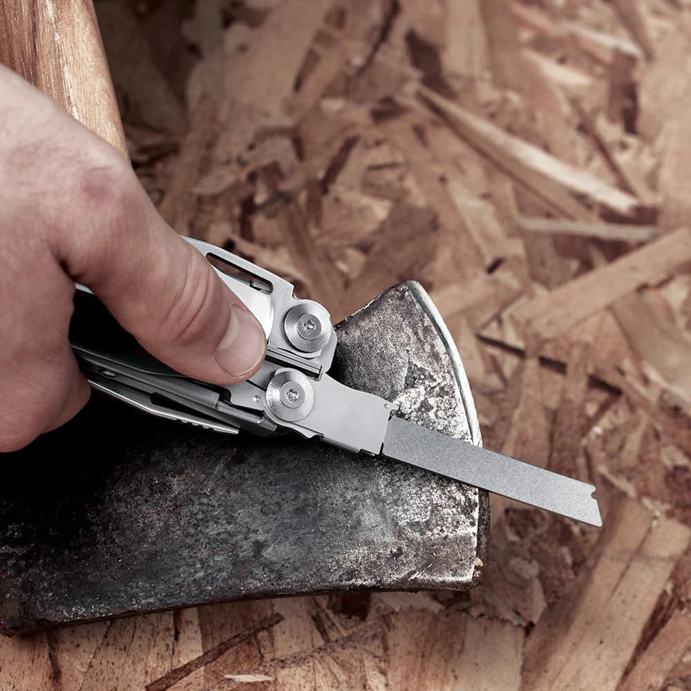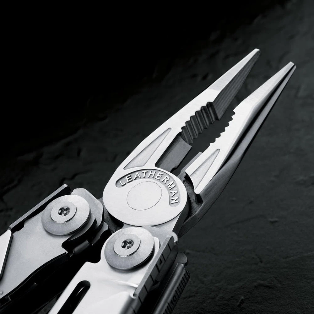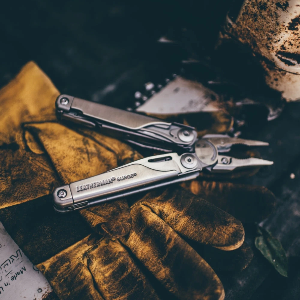 The Leatherman Surge Multi-tool is a powerhouse built with tough pliers, long blades and easy-to-use locks. A unique blade exchanger comes with saw and diamond/wood file blades. Large and small bit drivers include double-ended bits. And 4 outside-opening blades give you quick access to the tools you use most. With these new features, plus Leatherman’s strongest spring-loaded scissors yet, Surge is sure to make a splash at the work site.