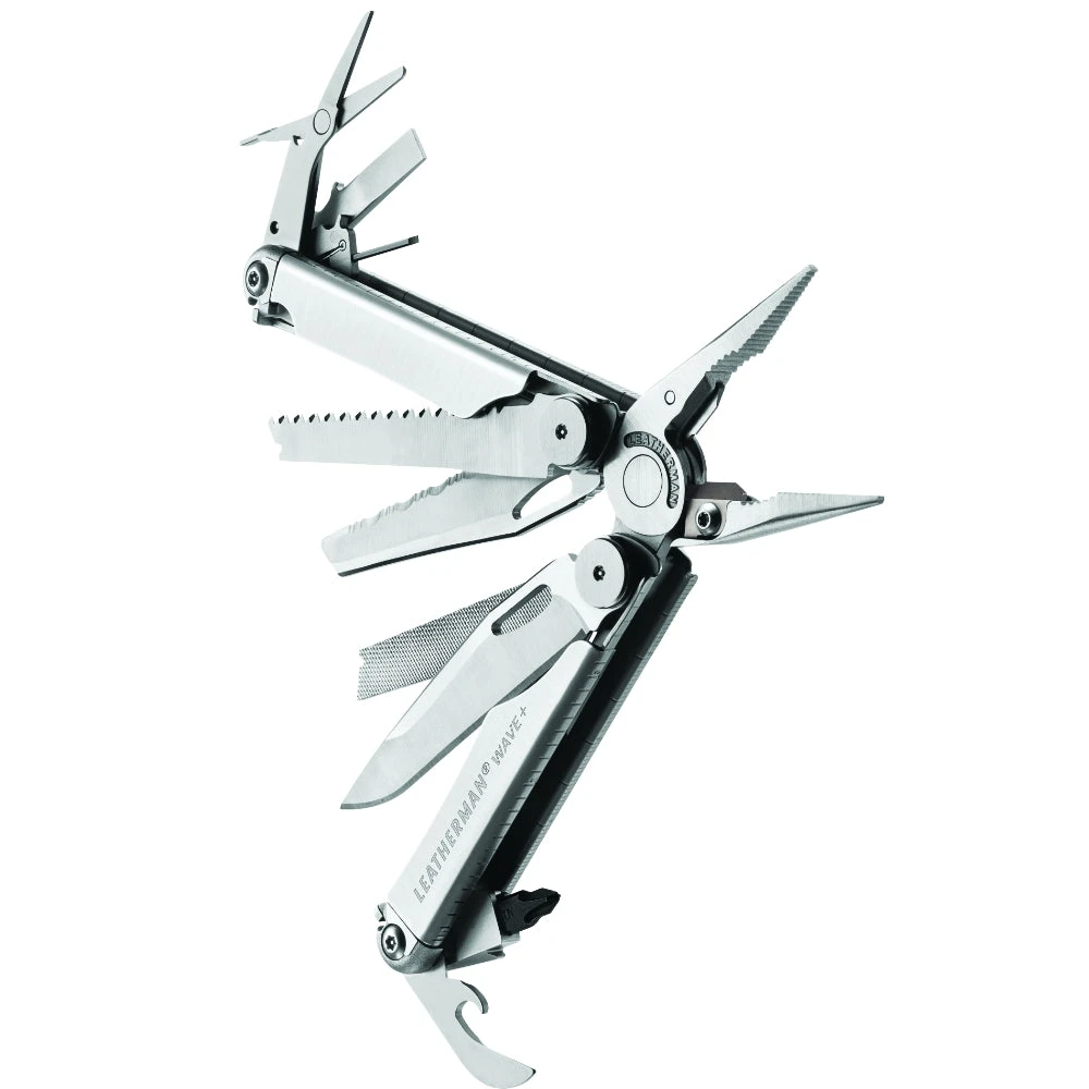 The Leatherman Wave + Multi-tool is an upgrade to the classic Wave, the bestselling Leatherman multi-tool of all time with all locking features. All of the tools packed into this 100 percent stainless steel 17-in-1 multi-tasker can be opened and locked with one hand quickly, so you don’t need to pause. Several of the tools, including the 420HC knife blade, are outside-accessible, so you can open them without unfolding your Wave.