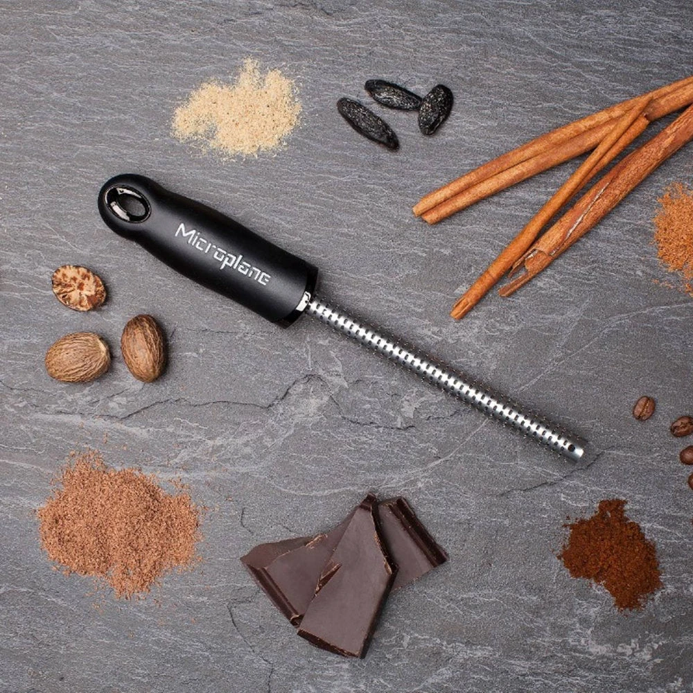 The Microplane Premium Classic Spice Grater is a hand-held rasp-style grater designed specifically for adding freshly-grated spices to your food.