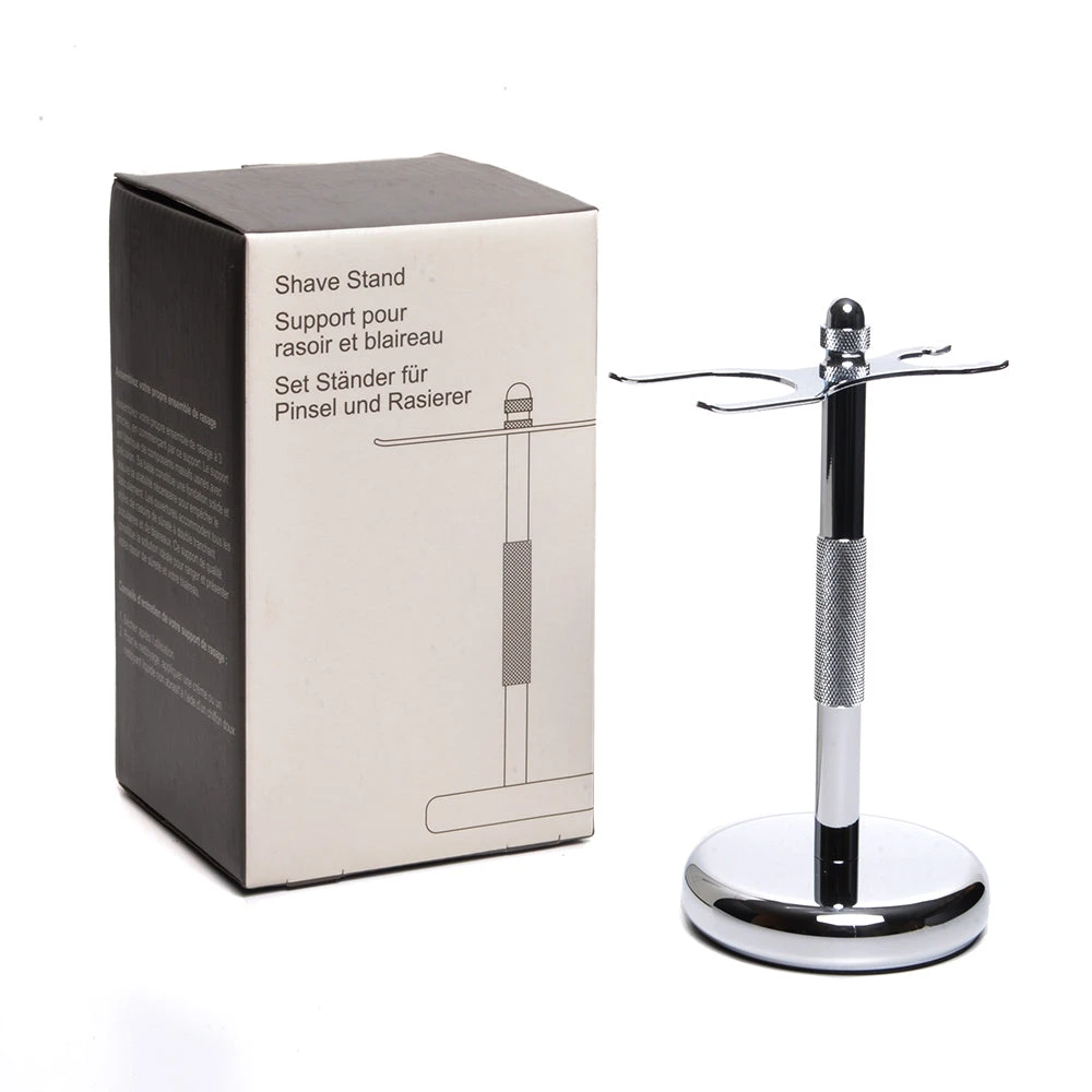 The Pure Badge Universal Shaving Stand is a great stand to hold any Mach3, Fusion, or standard double edge safety razor and standard shaving brush. The base of this stand is heavily constructed to provide stability and prevent tipping. Its beautiful chrome finish will add a nice flourish to your bathroom counter, while allowing your razor and brush to dry properly between uses.