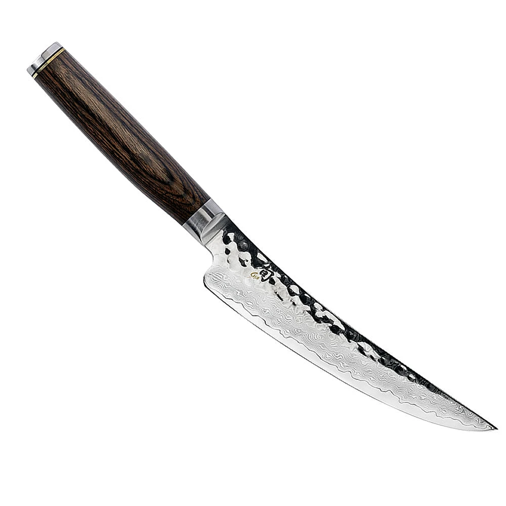 The Shun Premier 6-inch Boning/Fillet Knife has a narrow, sharp, curved blade ideal for filleting a fish or deboning a roast. Fibrous tissue and pork silverskin are no match for this sharp blade. Its curve gets it in close to the bone, and its narrow profile reduces drag as you cut against meat, making cutting fast and easy. The Shun Boning/Fillet knife also glides through fish, quickly removing bones and skin.