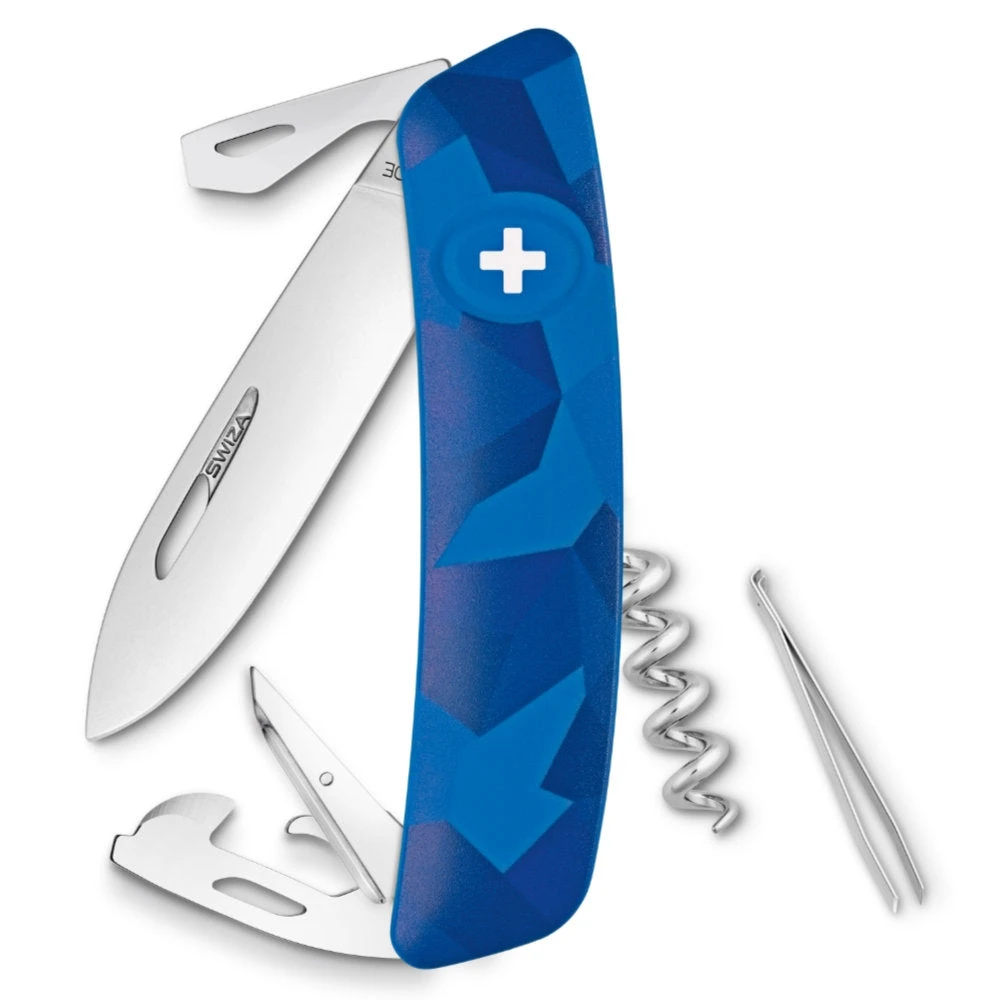 The Swiza C03 Swiss Pocket Knife is an authentic Swiss Knife with a unique new design and bold, modern camouflage patterns. The C03 features a long (2.95 inch), strong, locking stainless steel blade and 5 other implements housed in ergonomic, soft-touch handles. The blade’s die-cut slot makes it easy to open with either your left or right hand, and the Swiza Swiss cross logo on the handle is a safe, convenient blade lock release.