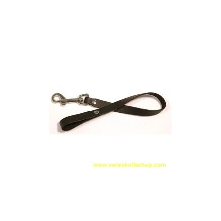 The 15 inch long Victorinox black Leather Knife Leash features a belt loop and shackle snap.