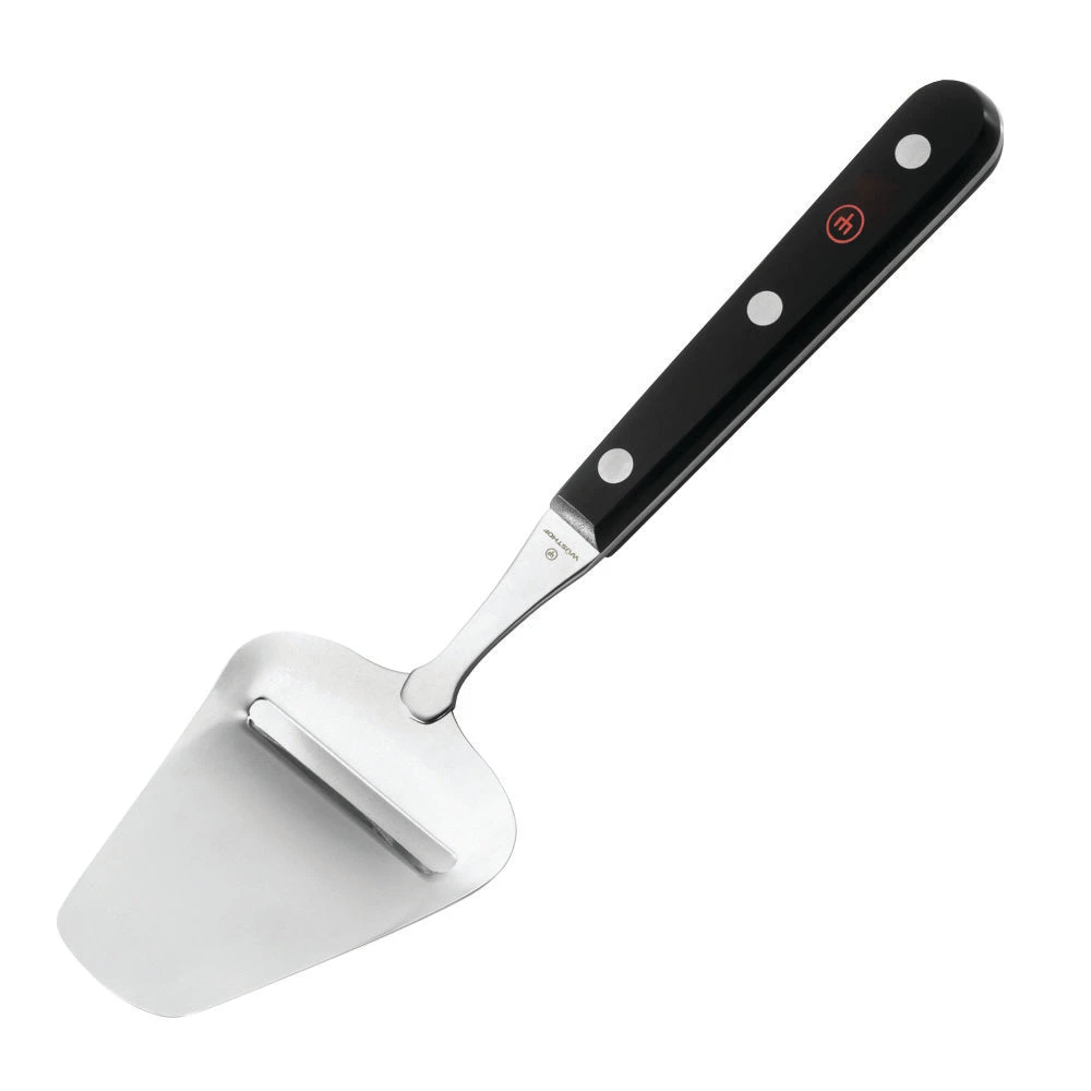 The Gourmet 4.75-inch Cheese Plane by Wusthof features the same high quality steel and comfortable riveted handle as the rest of the Wusthof Gourmet line. This cheese plane features a sharp blade designed to evenly and easily slice hard cheeses thick or thin.